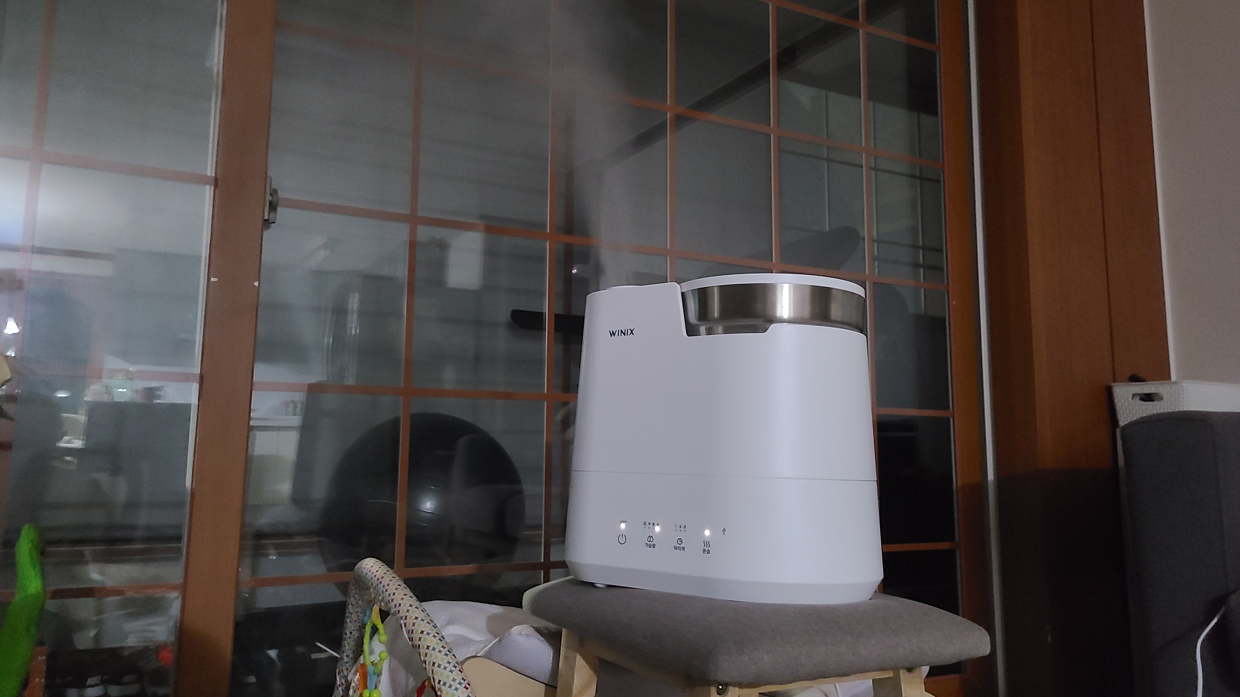 이렇게 24시간 요즘 가동 중인 가습기의 모습이다. 주 2회는 청소해줘야 한다고 한다.