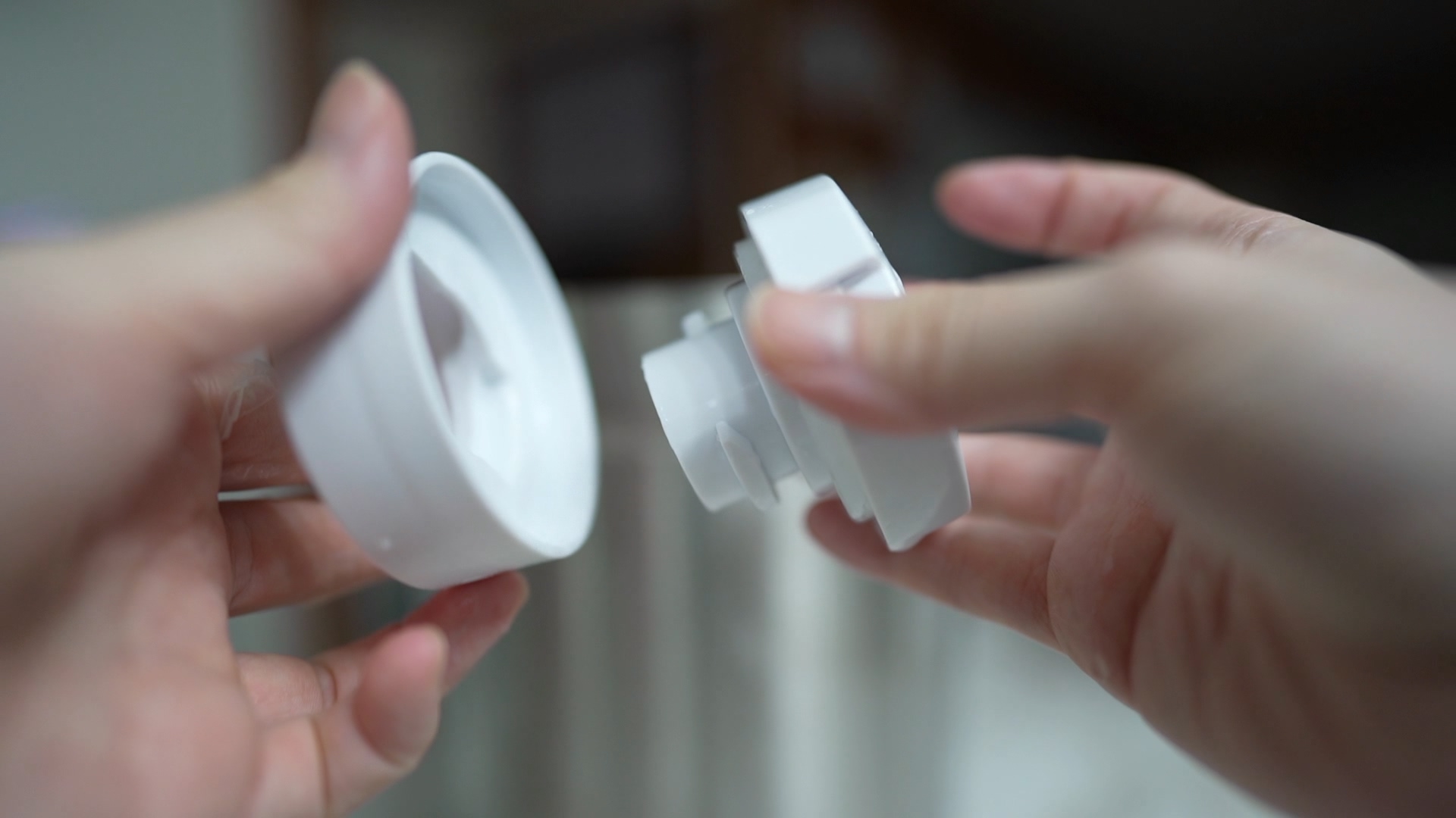 그리고 가습기 커버 상단의 분무 구멍(회전 가습 노즐)도 해체가 된다. 위로 들어올리면 그냥 빠지는데 모두 빼면 이렇게 생겼다.