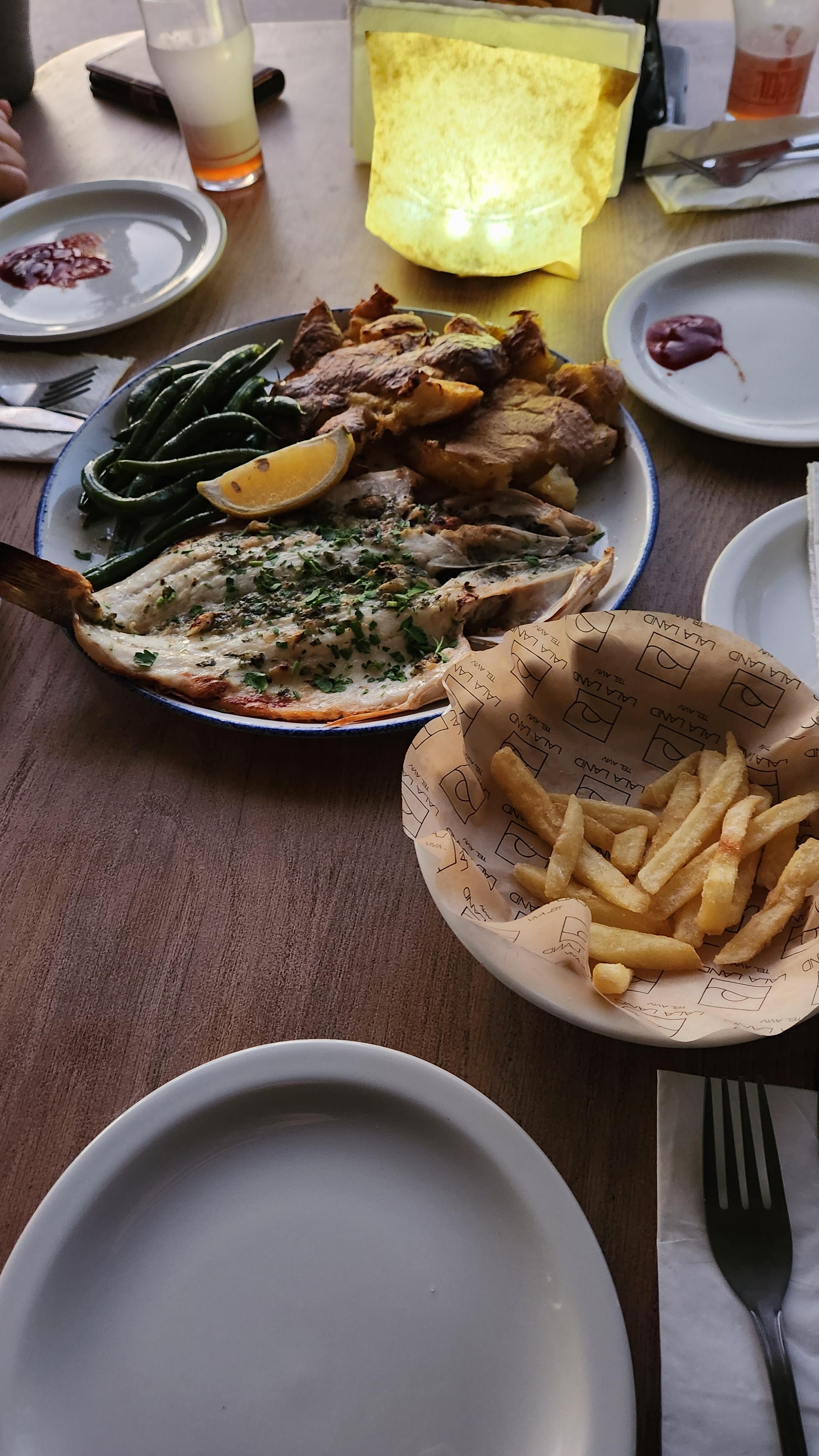 바게트 케밥같은거랑 밥에 고기튀긴거 야채믹스 한접시에 음료하나씩 먹고 4만원정도 나왔습니다