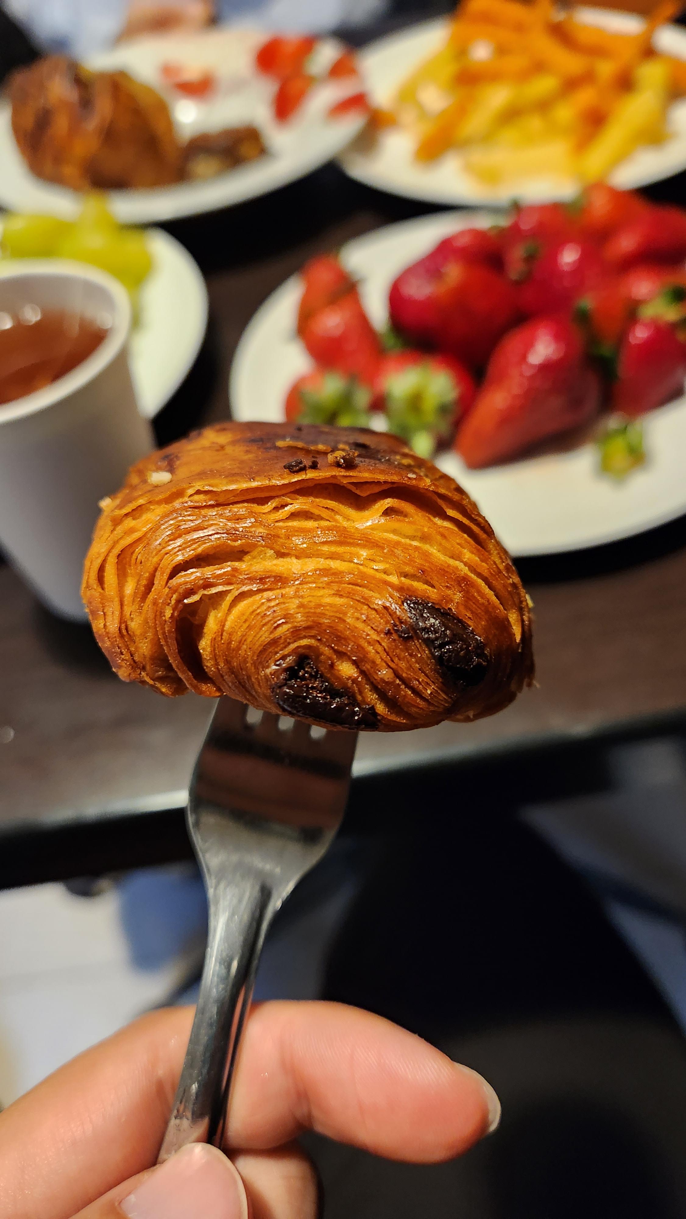 숙소 앞에 인기 많은 카페가 있어서 제가 좋아하는 뺑오쇼콜라도 사와서 먹었습니다.
